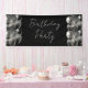 Balloons Birthday Black Silver Glitter Party Banner. Decorated with faux silver glitter and balloons. Celebrate your special day with this stylish Modern Black and Silver birthday party your party details in classic font on black background colour, simple and elegant, great surprise adult milestone birthday invitation for men and women. More designs and party supplies are available at my shop NiceStudioCreative.