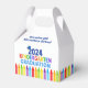 Ce ballotin de la fête de remise des diplômes customisé en 2024 présente un casquette cool au-dessus de l'écriture colorée et une rangée de crayons en arc-en-ciel. Joli jardin d'enfants design d'études supérieures en couleurs amusantes pour la dernière journée de l'école primaire. Félicitations à nos jeunes diplômés !