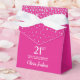 Ce ballotin de Merci étincelant et brillant de 21e anniversaire moderne, le nom de la fille d'anniversaire dans une police de caractères tendance, et attaché avec un élégant arc blanc, serait parfait pour votre événement. Ce serait très bien pour une confiserie, sur une table-cadeau de remerciement, ou à chaque endroit avec un service. Assurez-vous de commander suffisamment pour tous vos invités.