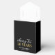 Merci aux ballotins d'anniversaire adulte avec un arrière - plan noir élégant, une parties scintillant faux or, le dicton "encourage à 50 ans", leur nom, et la date de la fête.