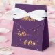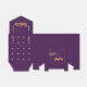 Front : Elégant et moderne merci ballotin pour une fête de 50e anniversaire. Fond violet foncé et texte faux or écrit avec un script de style à la main tendance : bonjour cinquante. Avec des points dorés comme décor. Modèles pour un nom, lettre d'or. Avec le texte : Merci. Dos : points dorés sur un arrière - plan violet.