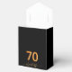 Elégant, classique, glamour et girly pour une fête de 70ème anniversaire. Un arrière - plan noir chic. Décoré avec des gouttes de parties scintillant en faux or, la peinture goutte à goutte. Personnalisez et ajoutez un nom. Avec le texte : Merci plus le nom des filles d'anniversaire. Le nom est écrit avec un script de style manuscrit moderne de couleur dorée avec des swashes. Le numéro 70 est écrit avec une police de style ballon. Pour que les swashes ne suppriment que le nom de l'échantillon, laissez les espaces ou émoticônes devant et après le nom.