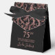 This elegant 75th Birthday Rose Gold Swirls Thank You favor box with shimmering rose gold faux glitter, the birthday girl's name in a trendy script font, and tied with an beautiful black bow would be perfect for your event. It would be great for a candy station, on a thank you gift table, or at each place setting with a favor. Be sure you order enough for all your guests.