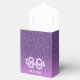 Un sac de faveur élégant, glamour et girly 80e anniversaire. Parties scintillant en faux-diamant violet et rose dégradé avec épersion en faux diamant. Modèles pour un nom, âge 80 et une date. Date de naissance ou date de la fête/anniversaire. Avec le texte : Merci ! Lettres blanches et rose clair. Le nom est écrit avec un script de style écrit à la main.