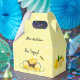 Cet adorable design ballotin est orné d'un motif arrière - plan jaune et blanc. Sur les panneaux avant et arrière, il y a un panier en osier marron rempli de citrons. Le texte dit "Heureux !", avec une petite abeille. Les panneaux latéraux comportent deux citrons entiers et la moitié d'un citron. Tout le texte peut être customisé.