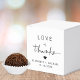 Boîte de faveur de mariage chic avec "Amour + Merci" en typographie simple et un script moderne élégant, et vos noms et date mariage.