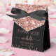 Fille Elegant Rose moderne Parties scintillant d'or Monogramme Nom Signature Script Personnalisé 30ème (ou tout âge) Ballotin de Merci d'anniversaire. Ce design qui met en vedette votre prénom dans une jolie police de caractères de caractères de caractères de caractères d'écharpe de style lettré (ou calligraphie) au-dessus de parties scintillant d'or faux rose sur arrière - plan noir. Ces boîtes-cadeaux élégantes et féminines, idéales pour distribuer, cadeaux, cadeaux d'hôtes et friandises lors d'une fête d'anniversaire à venir, 16 ans sucrés, baby shower, barbecue, douche nuptiale, réception de mariage, fête de bachelorette, anniversaire et plus encore.