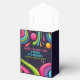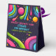 Une invitation dynamique et ludique à l'anniversaire avec un design psychédélique et d'inspiration rétro. L'arrière - plan sombre est décoré de formes colorées et tourbillonnantes, de lignes abstraites et de touches de couleurs vives rappelant les années 1970. La bordure est un motif amusant de visages souriants multicolores, avec des étoiles et des bulles éparpillées dans le design. Le texte est un mélange de polices audacieuses et ludiques, avec des détails clés surlignés en bleu vif et rose.