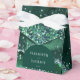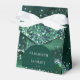Ce design moderne présente une forme d'arc vert émeraude foncé sur un arrière - plan d'aquarelle verte taillée avec fausse parties scintillant. Personnalisez-le avec les noms de la mariée et du marié et la date du mariage en blanc.