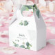 Élégantes boîtes de faveur de shower de mariage présentant un thème botanique d'eucalyptus de verdure, blanc avec fond de blush à l'aquarelle. Parfait pour traiter vos invités pour montrer votre appréciation pour célébrer cette journée spéciale avec vous.