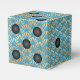 Oubliez vos invités avec ce magnifique et élégant design de ventilateur d'or art déco. Parfait pour les mariages, les collecteurs de fonds et les fêtes avec un thème de casino ou de jeu. Avec cette boîte de faveur style mort ou dés vous avez la possibilité de changer l'arrière - plan bleu à la couleur de votre choix. Une boîte de faveur parfaite pour vos invités à recevoir. Idée de réception de mariage classique à Las Vegas.