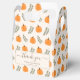 Un beau baby shower neutre pour le genre sur le thème de la chute merci ballotin. Ce design comprend une police de script de calligraphie moderne, des citrouilles oranges et des branches vertes d'Eucalyptus.