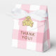 Merci à vos invités d'être venus à votre baby shower avec ce ballotin mignon avec un ours en peluche doux portant un arc rose. L'Arrière - plan est un motif à chèques de buffles rose et blanc. Le texte à l'avant dit "Merci !"