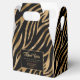 Offrez-vous un côté sauvage avec ce ballotin de bachelorette au thème du safari glam. Doté d'un motif zèbre noir et or arrière - plan et cadre doré bordé d'or pour votre texte. ce tag exsude le luxe exotique. Le cadre met en évidence "Merci, nous sommes très heureux que vous soyez ici" typographie en lettres dorées brillantes. Entièrement personnalisable pour votre safari ou votre week-end en bachelorette, ce ballotin est idéal pour un safari glamour, une jungle ou une fête sur le thème du poster de animal. Cherchez ID1151 pour voir d'autres produits dans ce jeu de design amusant de bachelorette.