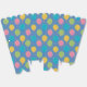 Un motif festif amusant sur une boîte de fête, avec des ballons multicolores sur un arrière - plan bleu ciel.