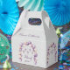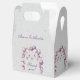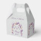 Remettez à vos invités leurs faveurs de remerciement dans cette jolie boîte avec ballons et lanternes blancs et violets. Noms de mariée et de mariée et texte "Merci"
