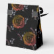 Admirez l'élégance des roses d'automne noirs, Crimson et violets, tout en appréciant la beauté du macabre et l'attrait de l'inconnu. Cette boîte fétiche de mariage enchanteresse est un motif floral foncé de roses antiques pourpres et d'oranges brûlées sur le noir. Le front a les noms des couples et la date mariage ornée de fleurs gothiques noires ornées. Ce ballotin est sombre et charmant et une faveur enchanteresse de votre mariage unique.