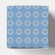 La barre blanche du navire est répliquée en plusieurs rangées, couvrant la boîte, sur un arrière - plan bleu moyen