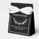 Cette boîte de fête est présentée dans une élégante couleur noir et blanc avec un accent brillant diamant au centre avant. Customisez cet élément et modifiez l'exemple de texte sur le vôtre avec ce modèle. Astuce : Ajoutez simplement vos bonnes friandises et ajoutez un ruban festif.