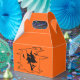 Boite de fête de style Gable en orange avec une imprimé sorcière d'Halloween festive. Customisez cet objet ou achetez tel quel. Conseil : Ajoutez un joli ruban.