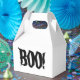Boîte de faveur de la fête de style Gable en noir/blanc avec une jolie Halloween BOO! impression. Customisez cet objet ou achetez tel quel. Conseil : Ajoutez un joli ruban.
