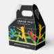 Anniversaire de enfant merci les boîtes de faveur de la fête avec une toile de fond noire, des terrains de trampoline, des enfants sautant et volant dans les airs, et un modèle de remerciement qui est facile à customiser.