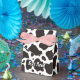 Motif arrière - plan de vache noir et blanc sans soudure. Texte personnalisé des deux côtés.