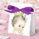 Ballotins princesses violets avec petite fille vintage portant une jolie couronne or. Vous pouvez ajouter du texte, changer la couleur arc et ajouter une couleur arrière - plan de votre choix à ce mignon lavande violet princess ballotin.