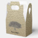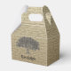 Un côté montre la propagation du chêne avec le nom de famille en-dessous. L'autre côté affiche le nom de famille, le nom de l'événement, l'emplacement et la date. Tous les champs de texte peuvent être personnalisés.