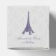 Personnalisez une boîte unique pour les invités avec ce Ballotin de Mariage damassé Tour Eiffel violet unique. Le design ballotin présente la Tour Eiffel contre un délicat arrière - plan en dentelle damassée. Personnalisez avec les noms du marié et de la mariée avec la date du mariage. Papier à lettres mariage supplémentaire disponible avec cette conception aussi.