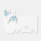Arrière - plan blanc chic décoré de roses bleu clair couleur eau, fleurs, fleurs, végétation d'eucalyptus. Une croix d'or. Avec le texte : Baptême et Merci écrits avec un script de style moderne en lettres de couleur noire. Personnalisez et un nom et une date.