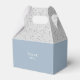Baptême élégant ou ballotin baptisant avec de la poussière d'étoile d'argent avec vos détails d'événement ensemble dans la typographie argentée chic sur un arrière - plan bleu poussiéreux. Vous pouvez personnaliser avec votre propre message de remerciement au contraire. Une façon parfaite de remercier vos invités ! Conçu par Thisisnotme©