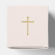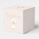 Baptême Baby Girl with Bonnet Ce bébé beau et doux est parfait pour le Baptême de votre enfant. Le design se compose d'un bébé sucré en combinaison blanche, d'un bib blanc avec une croix d'or et d'un bonnet blanc avec un arc rose. La couleur arrière - plan est un rose délicat. Découvrez les accessoires, cadeaux, faveurs de fête et papeterie correspondants.