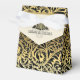 Bâtiment de tour abstrait Art déco noir, ballotin or avec une tour noir et or, motif damassé floral noir et doré et couleur beige/écru solide avec bande dorée. Ce design élégant est une approche moderne d'un style vintage/rétro qui ressemble à celui des années 20 et du Grand Gatsby. Il fait partie d'un ensemble mariage et est entièrement personnalisable.