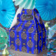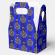 Une boîte cadeau de Noël festive avec un motif de baubles de Noël dorés avec des arcs d'or, sur un arrière - plan bleu royal pour ajouter une touche d'élégance à votre cadeau de Noël donnant cette période de fêtes.