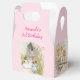 Adorable illustration de Beatrix Potter issue de ses célèbres livres d'histoires pour enfants. Jolies images dessinées à la main par Beatrix Potter. Jemima Puddle Duck, Miss Moppet, écureuils et chatons sur un fond rose clair. Personnalisez avec le nom et l'âge de votre enfant. Remplissez de bonbons, de petits jouets ou de biscuits. Cadeau de fête d'anniversaire parfait.