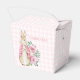 Doux rose plaid Beatrix Potter ballotin personnalisé pour le baby shower parfait. Pastel rose doux en vichy arrière - plan. Ajoutez le nom et la date de l'événement spécial pour customiser sur le devant. Nous avons ajouté une typographie "Merci" sur le dos avec un autre adorable lapin Beatrix Potter. Tout aussi doux que peut être pour une faveur baby shower pour tous vos invités.