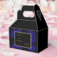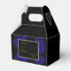 Elégant, glamour et sophistiqué ballotin de mariage personnalisé pour les mariés nouvellement mariés avec de belles images imprimées de support bleu sur un arrière - plan noir. Au centre de ce joli ballotin se trouvent vos détails personnels entourés d'un cadre de parties scintillant doré et brillant. Il s'agit d'un design moderne et à la mode adapté aux mariages pour toute saison, printemps, été, automne ou hiver..Tout le texte est entièrement personnalisable, Si vous souhaitez de l'aide pour customiser votre produit s'il vous plaît contactez-moi par mon magasin et je serai très heureux de vous aider.
