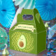 Un avocat de style dessin animé avec effet demi-ton appliqué à l'arrière - plan. Ballotins verts décoratifs. Modifiez le nom pour customiser. Idée cadeau pour adultes et enfants qui aiment les avocats et la nourriture saine.