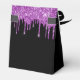 Pour une fête d'anniversaire de 50ème anniversaire (ou de n'importe quel âge). Un arrière - plan noir chic avec des gouttes de parties scintillant violet tendance, la peinture goutte à goutte. Personnalisez et ajoutez un nom et 50 ans. Avec le texte : Merci écrit avec un script de style à la main moderne. Lettres d'or.
