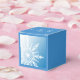Personnalisez le fabuleux Feu de neige blanc sur le Ballotin de mariage d'hiver bleu avec les noms de la mariée et du marié et la date de leur cérémonie de mariage ou de la douche nuptiale de décembre, janvier ou février. Ces élégants ballotins de fêtes à thème hivernal personnalisé présentent un design complexe de flocon blanc avec un arrière - plan bleu dégradé.