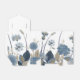 Elégant design floral bordé de fleurs bleues et beiges avec de hautes tiges et des feuilles sur un arrière - plan blanc propre, créant un look doux, moderne et sophistiqué.