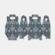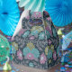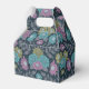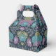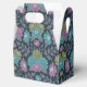 Ce ballotin présente des fleurs dans les tons violet, bleu et vert olive, entourées de frondes de fougères violettes muettes et de feuilles sur un arrière - plan bleu foncé.