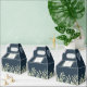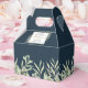 Une boîte de faveur de mariage élégante avec des feuilles aquarelles délicates sur un fond bleu marine profond encadrant vos noms et message de remerciement. Un moyen parfait de dire merci à vos invités ! Conçu par Thisisnotme©