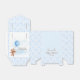 Blue Polka Dot Teddy Bear Baby shower Ballotins Un imprimé pois tout-en-un. FRONT : Personnalisé avec votre nom et votre date. RETOUR : Un ours en peluche tenant un ballon bleu avec un arrière - plan du ciel. Customisez le message à l'arrière. © Kimbellished, LLC