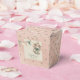 Elevate your whimsical celebration with this charming baby shower favor box. It features a delicate watercolor baby romper hanging beneath soft pastel bunting against a classic polka dot backdrop. Perfect for gifting sweet treats or small mementos to guests at a girl's new baby arrival party.