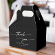 Ces boho chic couleur éditable merci mariage boîtes sont parfaites pour un mariage minimaliste. Le design bohème moderne noir foncé, sophistiqué et chic, se compose d'une calligraphie rustique simple au style unique mais classique. Personnalisez vos ballotins avec vos noms et votre date de mariage.