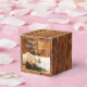 Customisez la boîte de faveurs de mariage rustique décontractée mais classe et bois de grange avec le nom personnel de la date de la cérémonie de mariage et de mariage et remplissez avec les faveurs de fête ou petits cadeaux pour les invités à votre ferme rurale ou de ranch style nuptiale douche ou mariage réception. Ces ballotins en bois de style boisé à thème rustique et personnalisé présentent une photographie de nature pittoresque d'un bouleau blanc, tranche de bois naturel, cônes de pin brun et branche de pin vert avec un arrière - plan patiné en bois de grange brune.