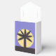 Cette boîte cadeau de faveur est conçue avec une représentation en papier d'art d'un palmier silhoué contre une pleine lune et un ciel violet.
