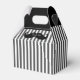 Boîte cadeau élégante pour les hommes de chambre faite dans un motif motif rayé gris et blanc, avec poignées noires. Les graphiques d'une moustache noire, sur le devant, ont du Merci de lecture de texte blanc. Super petite boîte cadeau pour ce petit cadeau de remerciement spécial à votre meilleur homme et groomsmen. Super boîte cadeau pour nos flacons de 6 oz.